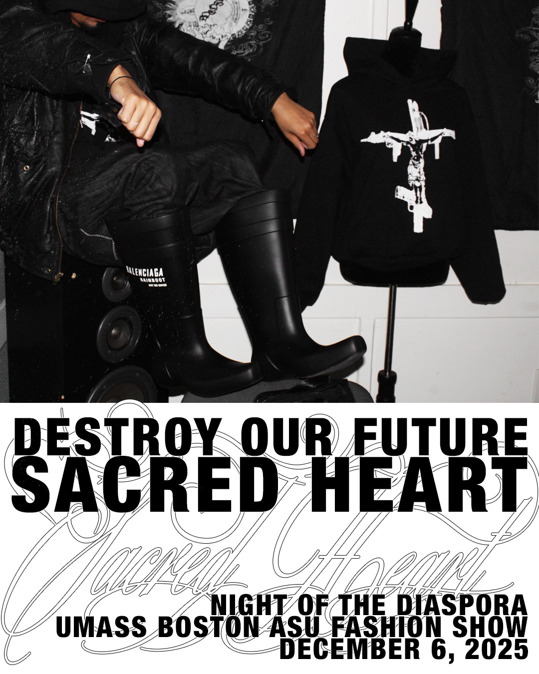Destroy Our Future is not a call for destruction, but a refusal of the systems that attempt to regulate identity, through stereotypes, cultural expectations, and the policing of bodies. Through fashion and image-making, the work reclaims autonomy, positioning the body as both site and symbol.
