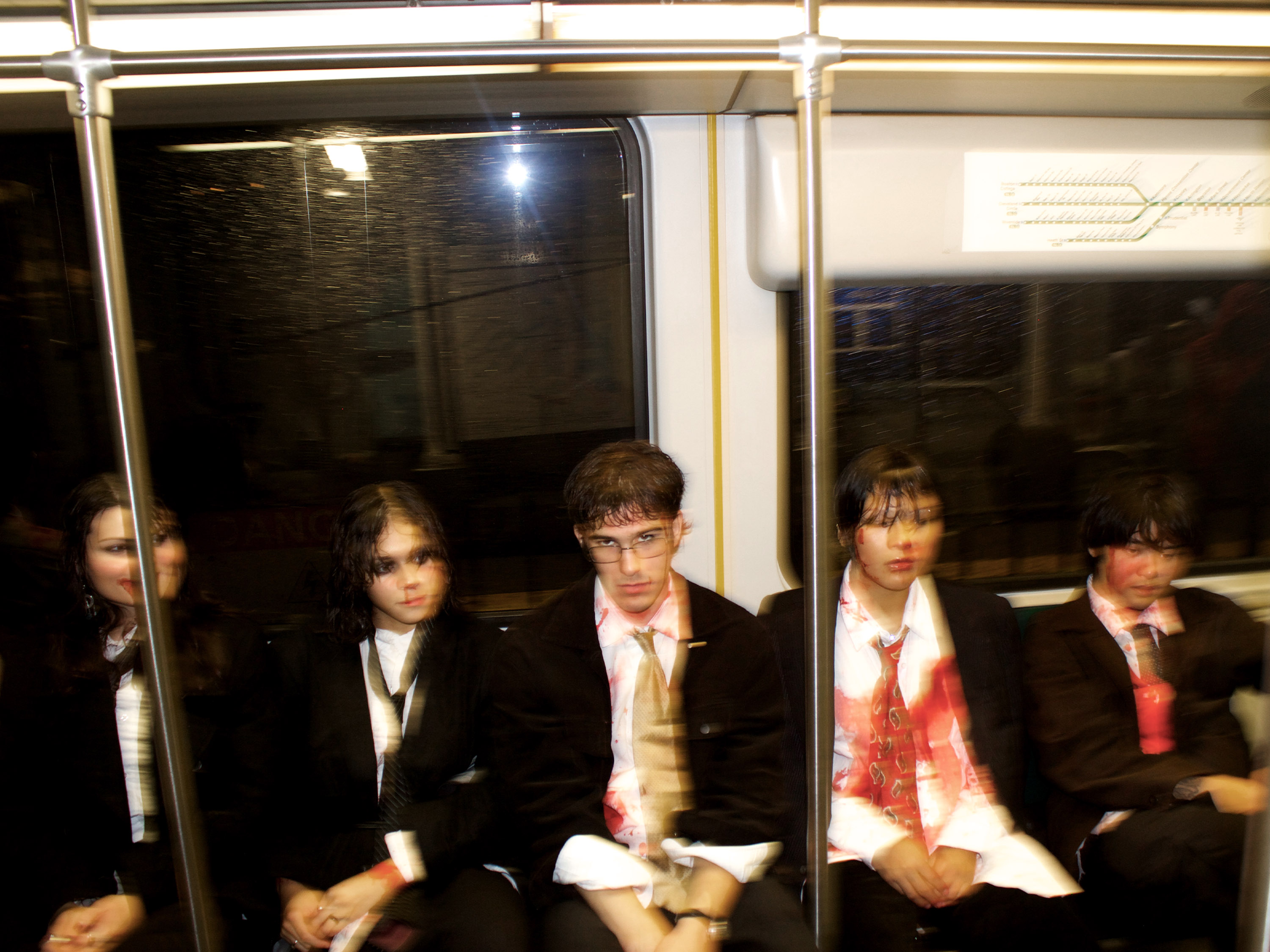 Our most successful collaboration marked the beginning of our true potential as a creative team. We set out to film a music video for their single, released at the end of summer 2024. With the track being sonically poppier than their other songs, we aimed for visuals that felt hectic, high-energy, cathartic, and stylish. The video was shot in two parts: first on the train, then in the recording studio under strobe lights. As art director, I worked closely with our cinematographer to bring the vision to life, while also handling styling, makeup, and the final edit of the video.