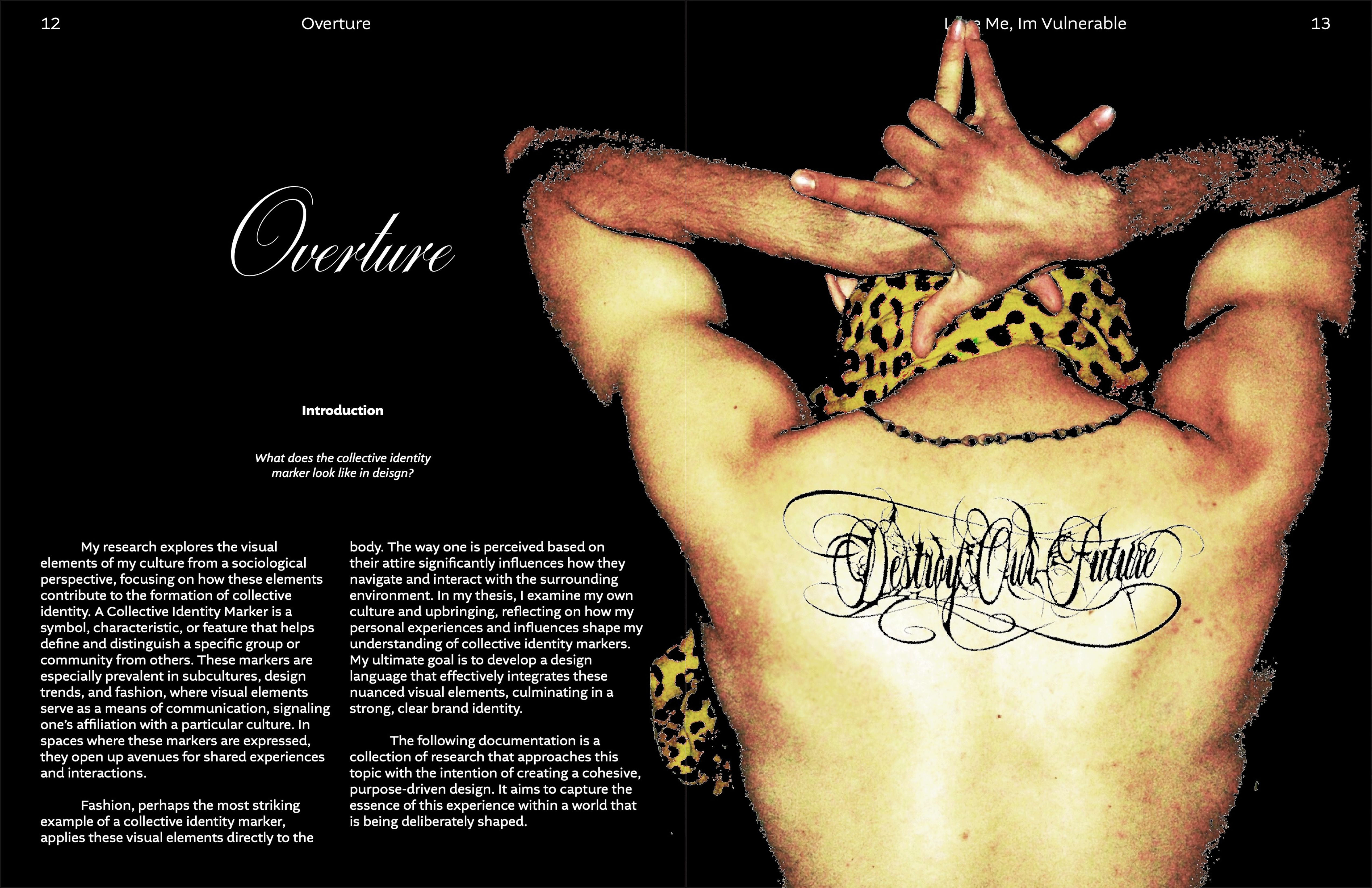 Destroy Our Future is not a call for destruction, but a refusal of the systems that attempt to regulate identity, through stereotypes, cultural expectations, and the policing of bodies. Through fashion and image-making, the work reclaims autonomy, positioning the body as both site and symbol.